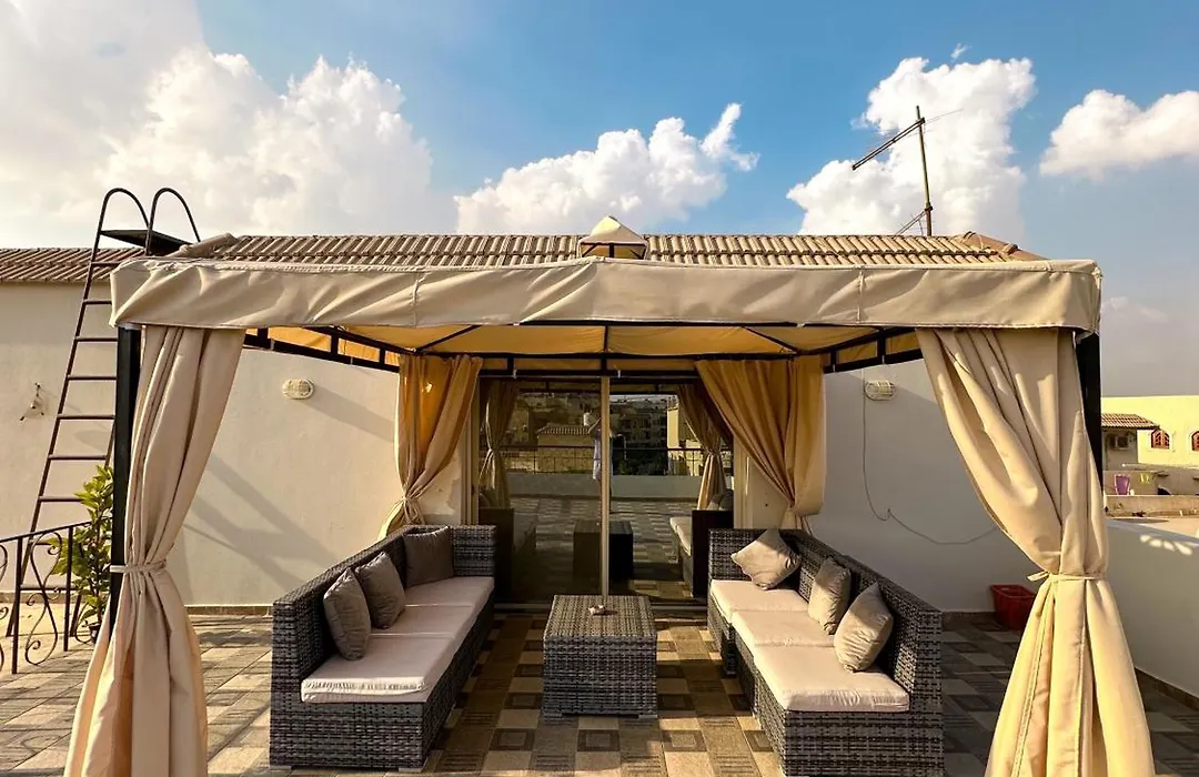 2Bd Apartment In A Rooftop With A Private Terrace includes self-catering facilities, such as a kitchen with an electric kettle, a refrigerator, and kitchenware. 2Bd Apartment In A Rooftop With A Private Terrace is around 60 minutes by car from El Giza railway station.